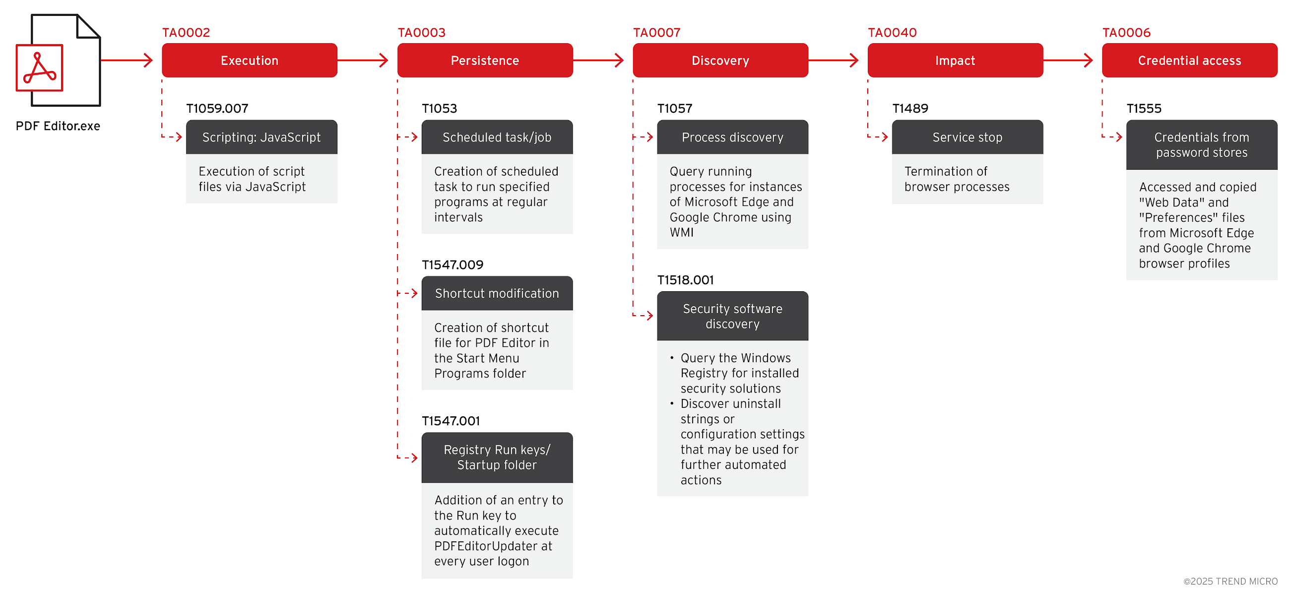 EvilAI, per Trend Micro, is used as a stager, chiefly acting as a conduit to gain initial access, establish persistence, and prepare the infected system for additional payloads, while taking steps to enumerate installed security software and hinder analysis.